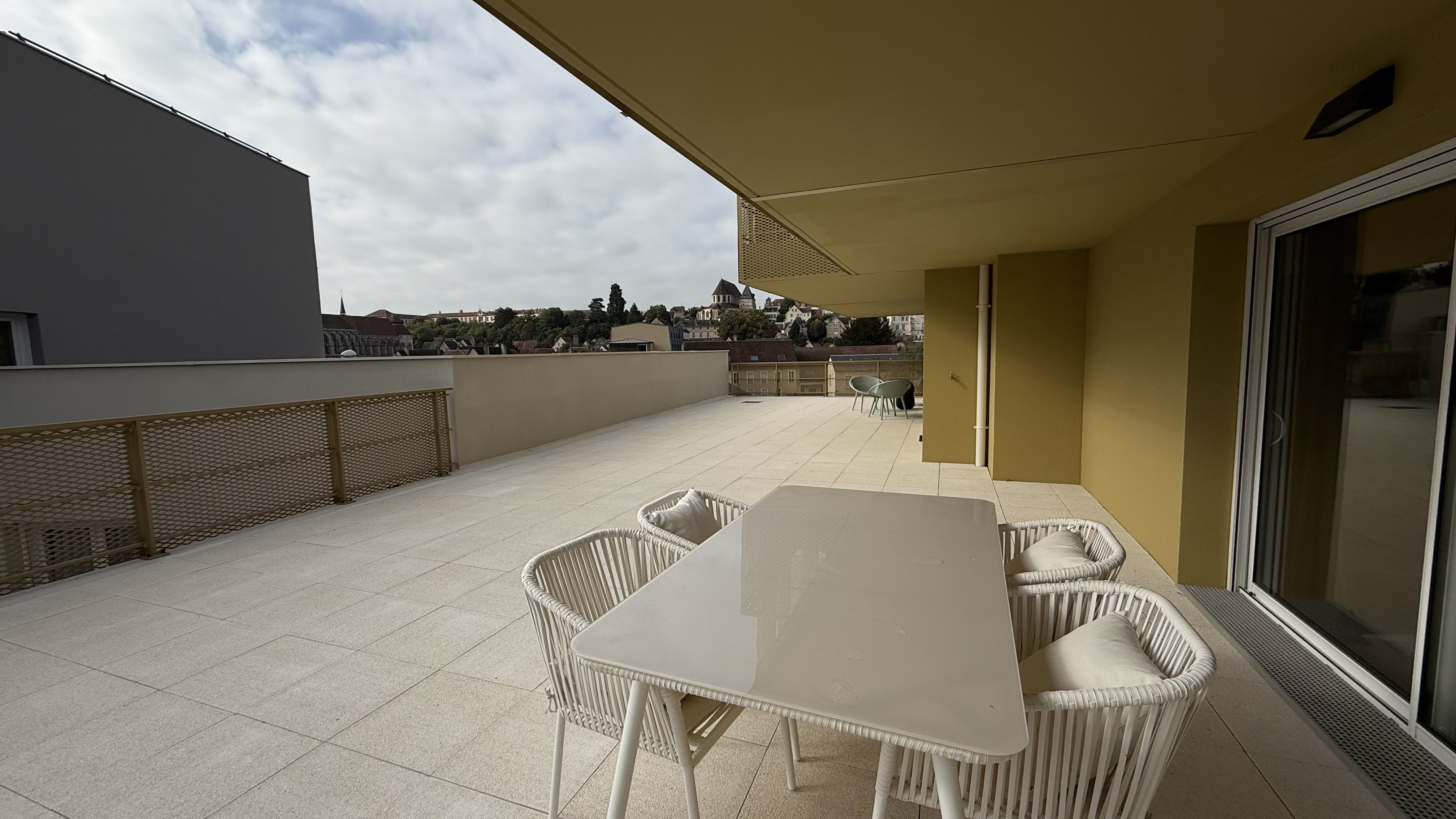 Il se compose de 3 chambres, 2 salles d’eau, d’un cellier, d’un bureau ainsi que d’une grande pièce de vie de 58m². Mais surtout, il dispose d’un superbe espace extérieur de plus de 100m², avec une vue panoramique sur la ville de Chartres, idéal pour partager des moments de convivialité.