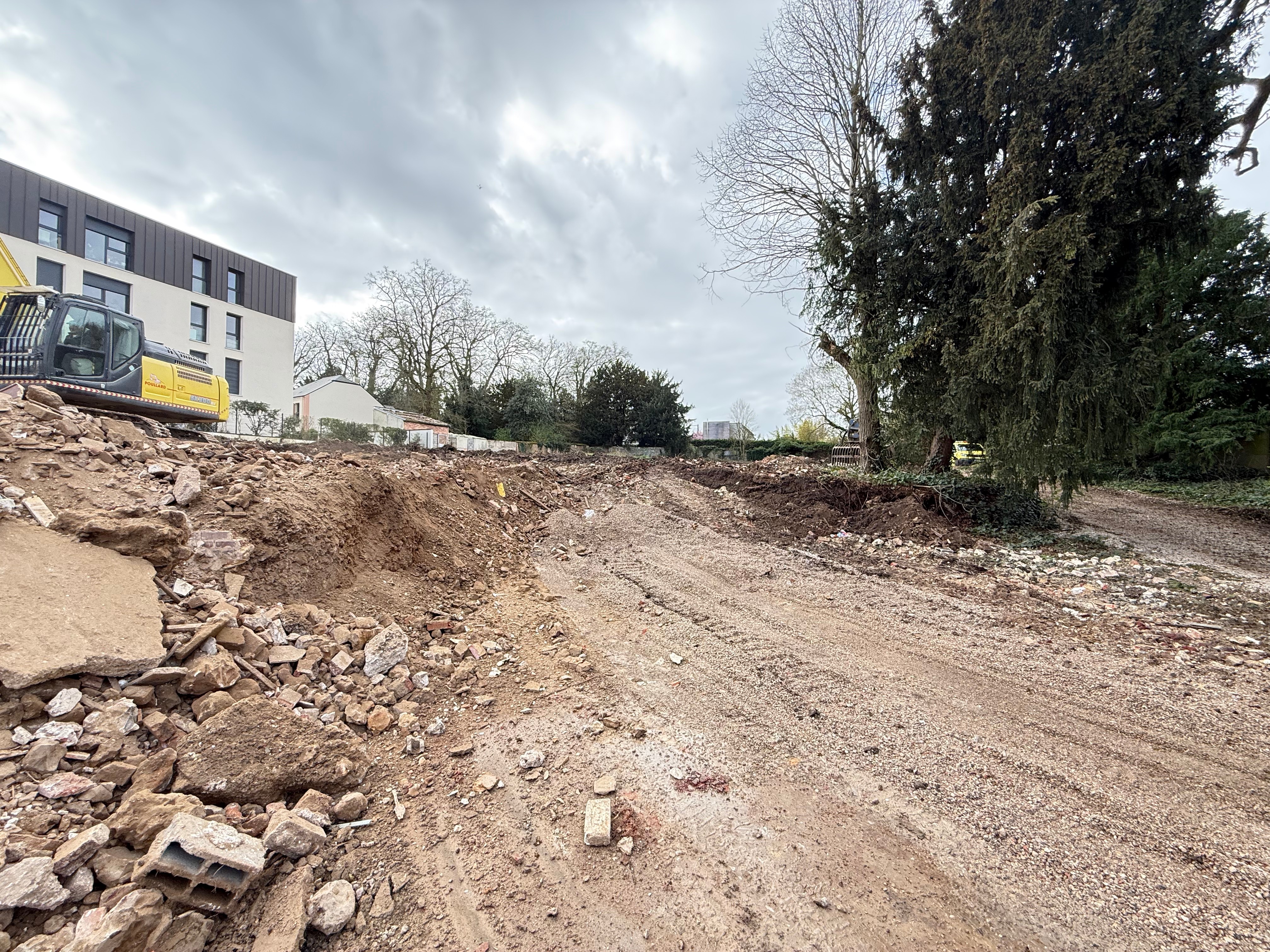Les travaux engagés sur le site marquent une avancée concrète dans la réalisation du programme. Les anciennes constructions ont été progressivement démolies afin de libérer l’espace nécessaire à l’implantation de la future résidence.